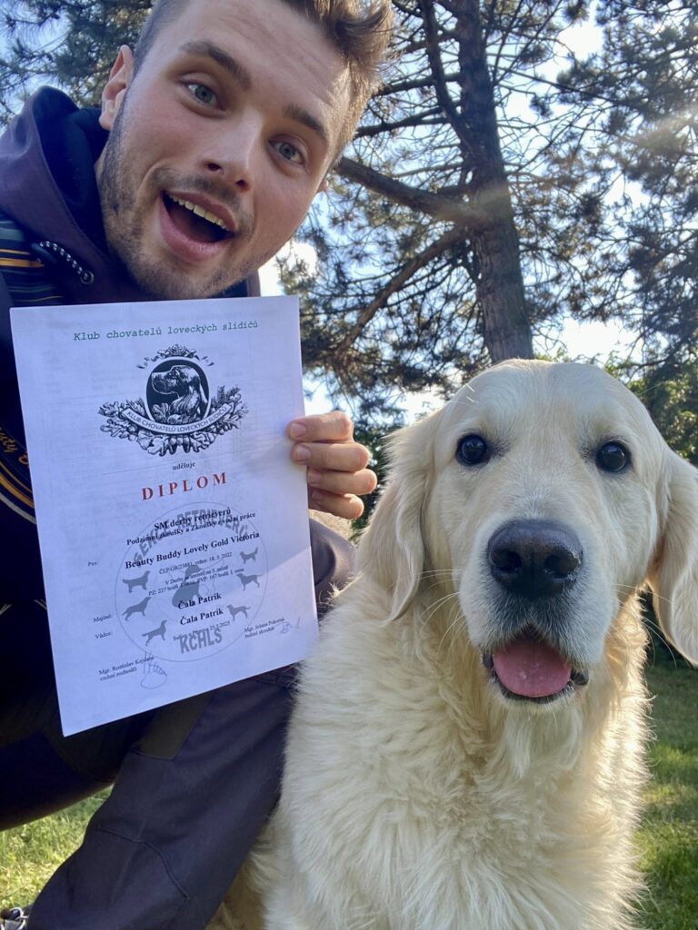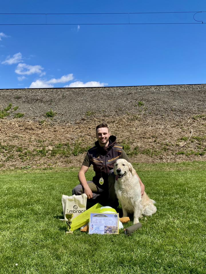 Klubové podzimní zkoušky retrieverů Kožušany 28. 9. 2023 – II. cena – 208 bodů, rozhodčí Mgr. Jiří Štrajt